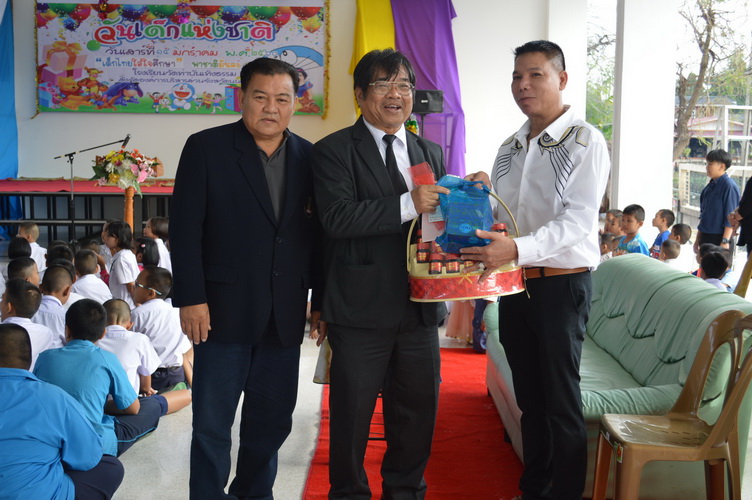 นายสมคิด มากวงษ์ มอบกระเช้าสวัสดีปีใหม่แด่ นายสุเวทย์ ต่อโชติ ผู้อำนวยการโรงเรียน |