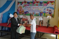 นายสุเวทย์ ต่อโชติ ผู้อำนวยการโรงเรียน มอบกระเช้าสวัสดีปีใหม่แด่ นายสมคิด มากวงษ์ |