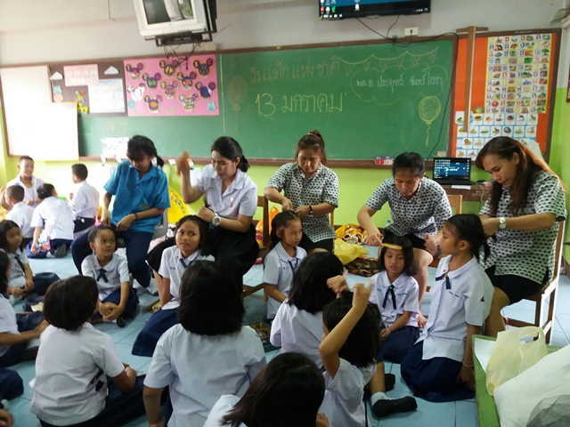 คณะครูร่วมงานบุญจำหน่วยธูป-เทียน-ทอง |