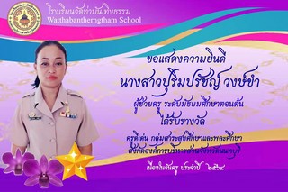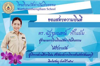 1. นางสาวฉัฏฐมณฑน์ ฟักแย้ม ผู้อำนวยการโรงเรียนวัดท่าบันเทิงธรรม ผู้บริหารสถานศึกษาดีเด่น