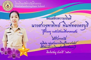 6. นางสาวจุฑาทิพย์ พิมพ์ทองครบุรี ครูดีเด่น/ระดับมัธยมศึกษา กลุ่มสาระการเรียนรู้วิทยาศาสตร์