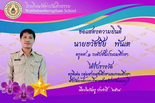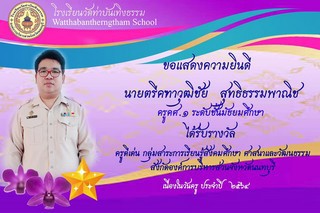 2. นายตรีตฑาวุฒิชัย สุทธิธรรมพาณิช ครูดีเด่น/ระดับมัธยมศึกษา กลุ่มสาระการเรียนรู้สังคมศึกษา ศาสนาและวัฒนธรรม