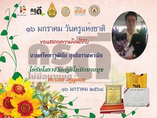 2. นายตรีคฑาวุฒิชัย สุทธิธรรมพาณิช หัวหน้างานฝ่ายงานวิชาการโรงเรียนวัดท่าบันเทิงธรรม ( โล่รางวัลครูดีไม่มีอบายมุข/ประเภทครูผุ้สอน )