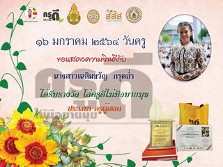 5. นางสาวเฉลิมขวัญ กรุดอ่ำ หัวหน้างานพัสดุโรงเรียนวัดท่าบันเทิงธรรม ( โล่รางวัลครูดีไม่มีอบายมุข/ประเภทครูผุ้สอน )
