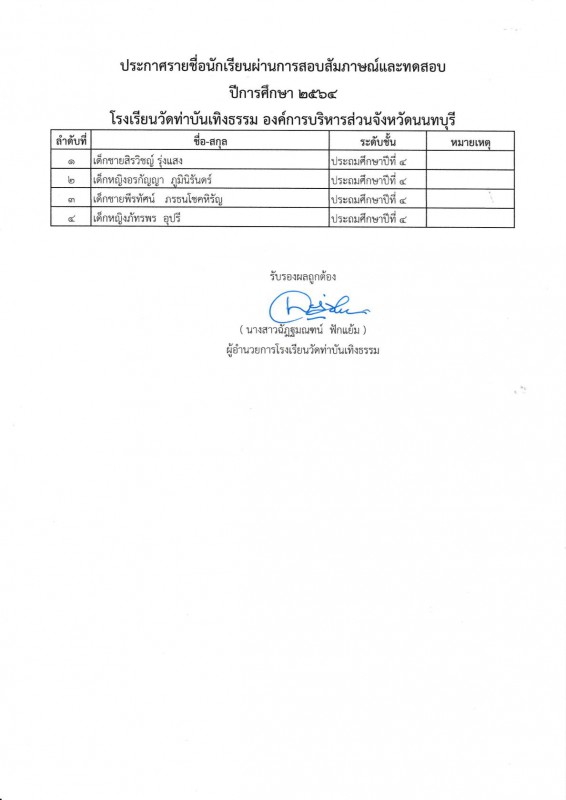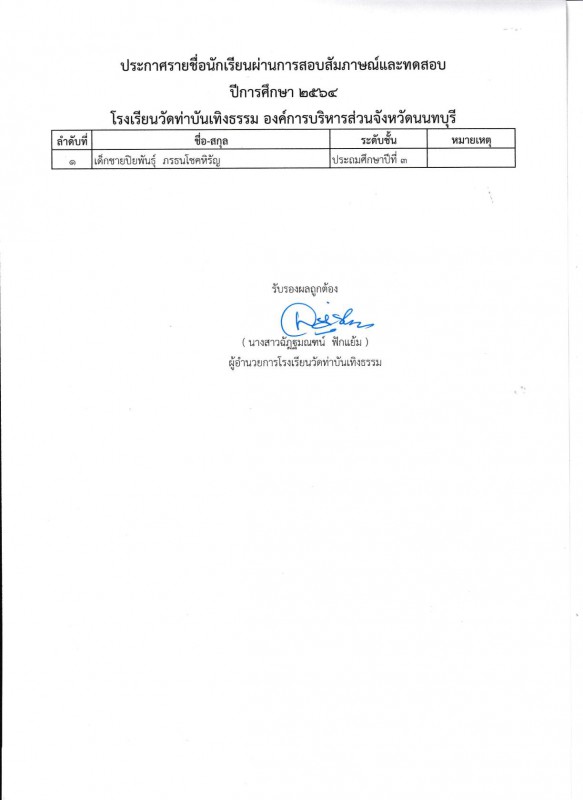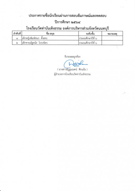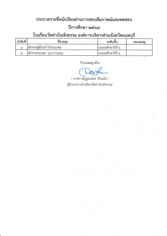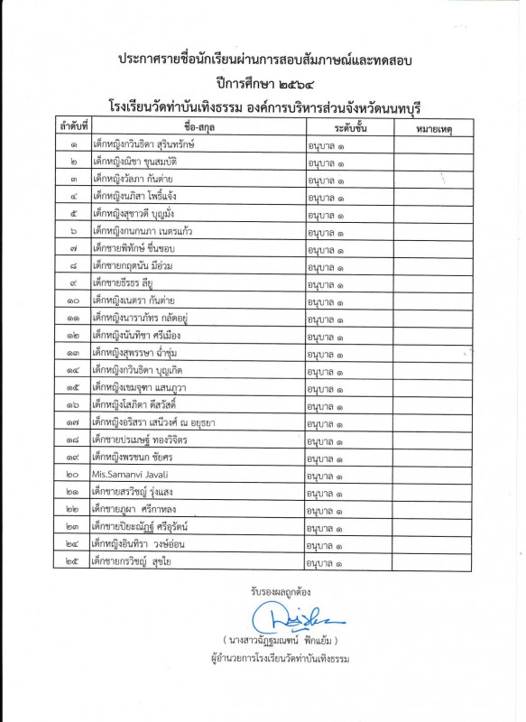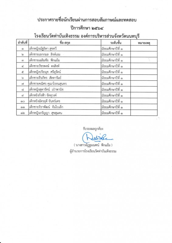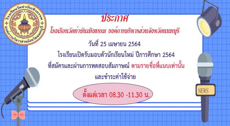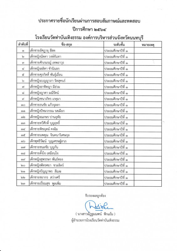 ประกาศรายชือนักเรียนมอบตัว ปีการศึกษา2564