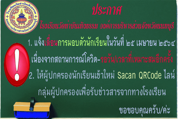 แจ้งเลื่อนการเข้ามอบตัว ปีการศึกษา 2564