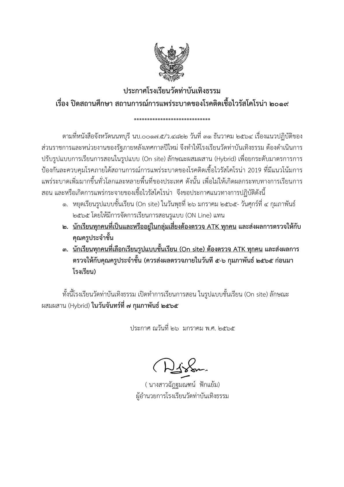 ประกาศ ปิดสถานศึกษาชั่วคราว