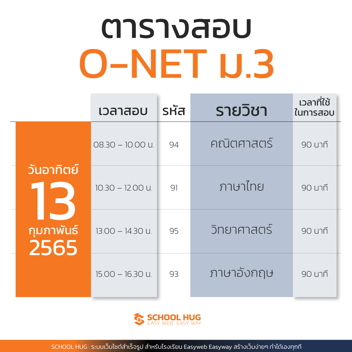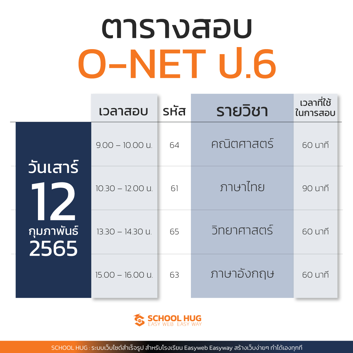 ตารางสอบ O-Net ปีการศึกษา 2564