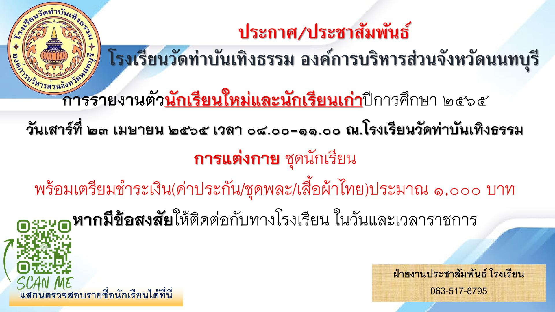 ประกาศรายชื่อนักเรียนผ่านการสอบสัมภาษณ์เพื่อรายงานตัว(ทั้งนักเรียนใหม่และเก่า)